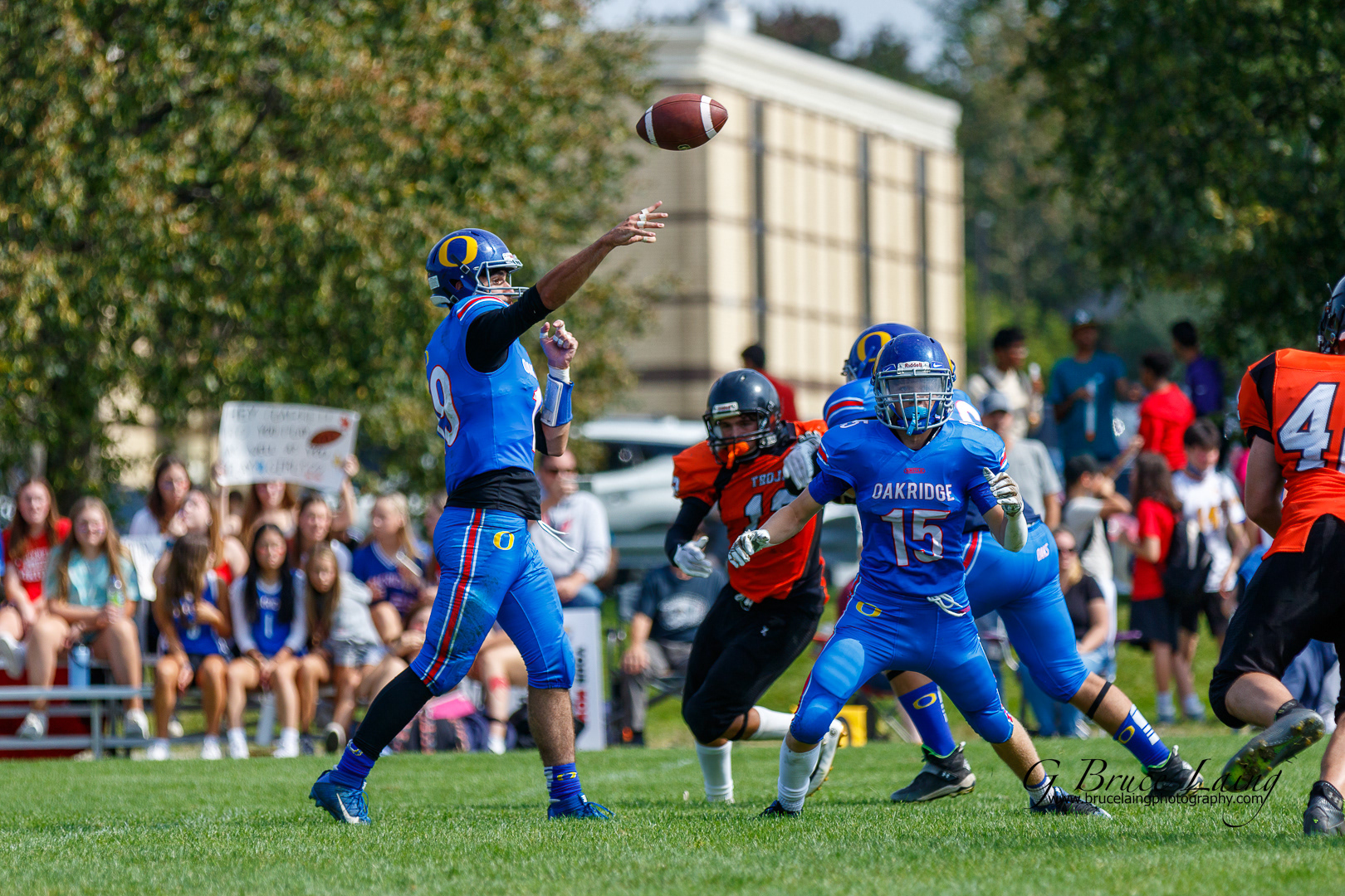 #18 Brady Milne throws a pass